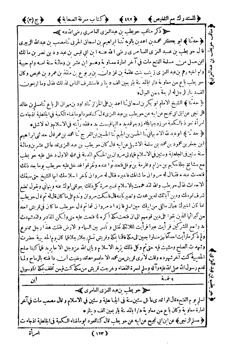 ذِكْرُ مَنَاقِبِ حُوَيْطِبِ بْنِ عَبْدِ الْعُزَّى الْعَامِرِيِّ رَضِيَ اللَّهُ عَنْهُ