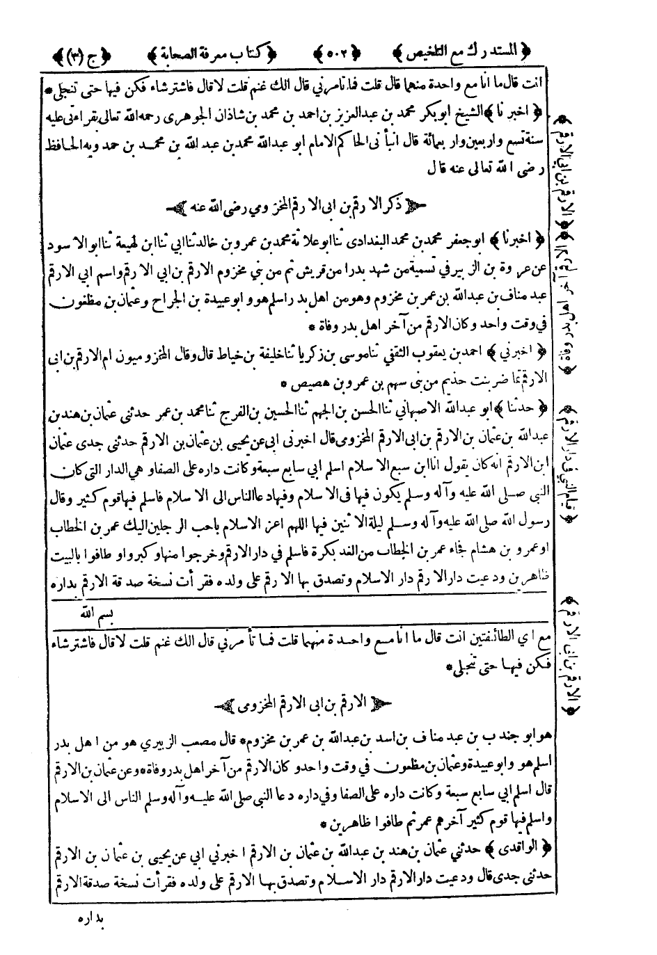 ذِكْرُ الأَرْقَمِ بْنِ أَبِي الأَرْقَمِ الْمَخْزُومِيِّ رَضِيَ اللَّهُ عَنْهُ