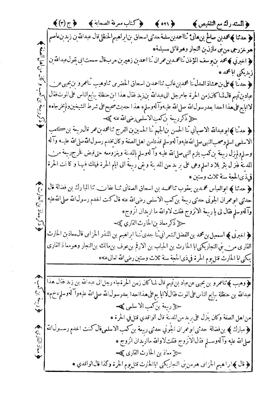 6218- أَخْبَرَنِي إِسْمَاعِيلُ بْنُ مُحَمَّدِ بْنِ الْفَضْلِ الشَّعْرَانِيُّ ، حَدَّثَنَا جَدِّي ، حَدَّثَنَا إِبْرَاهِيمُ بْنُ الْمُنْذِرِ الْحِزَامِيُّ ، قَالَ : مُعَاذُ بْنُ الْحَارِثِ الْقَارِيُّ مِنْ بَنِي النَّجَّارِ ، يُكَنَّى أَبَا الْحَارِثِ بْنِ الْحُبَابِ بْنِ الأَرْقَمِ بْنِ عَوْفِ بْنِ مَالِكِ بْنِ النَّجَّارِ ، وَهُوَ مُعَاذٌ الْقَارِيُّ يُكَنَّى أَبَا الْحَارِثِ ، قُتِلَ يَوْمَ الْحَرَّةِ فِي ذِي الْحِجَّةِ سَنَةَ ثَلاَثٍ وَسِتِّينَ رَضِيَ اللَّهُ عَنْهُ.