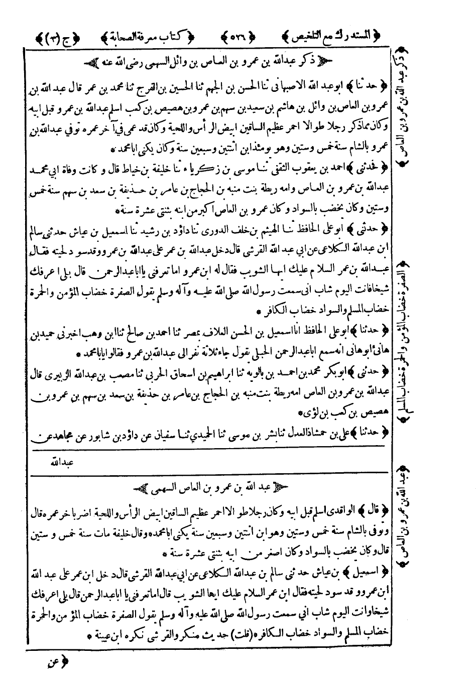 ذِكْرُ عَبْدِ اللهِ بْنِ عَمْرِو بْنِ الْعَاصِ بْنِ وَائِلٍ السَّهْمِيِّ رَضِيَ اللَّهُ عَنْهُ