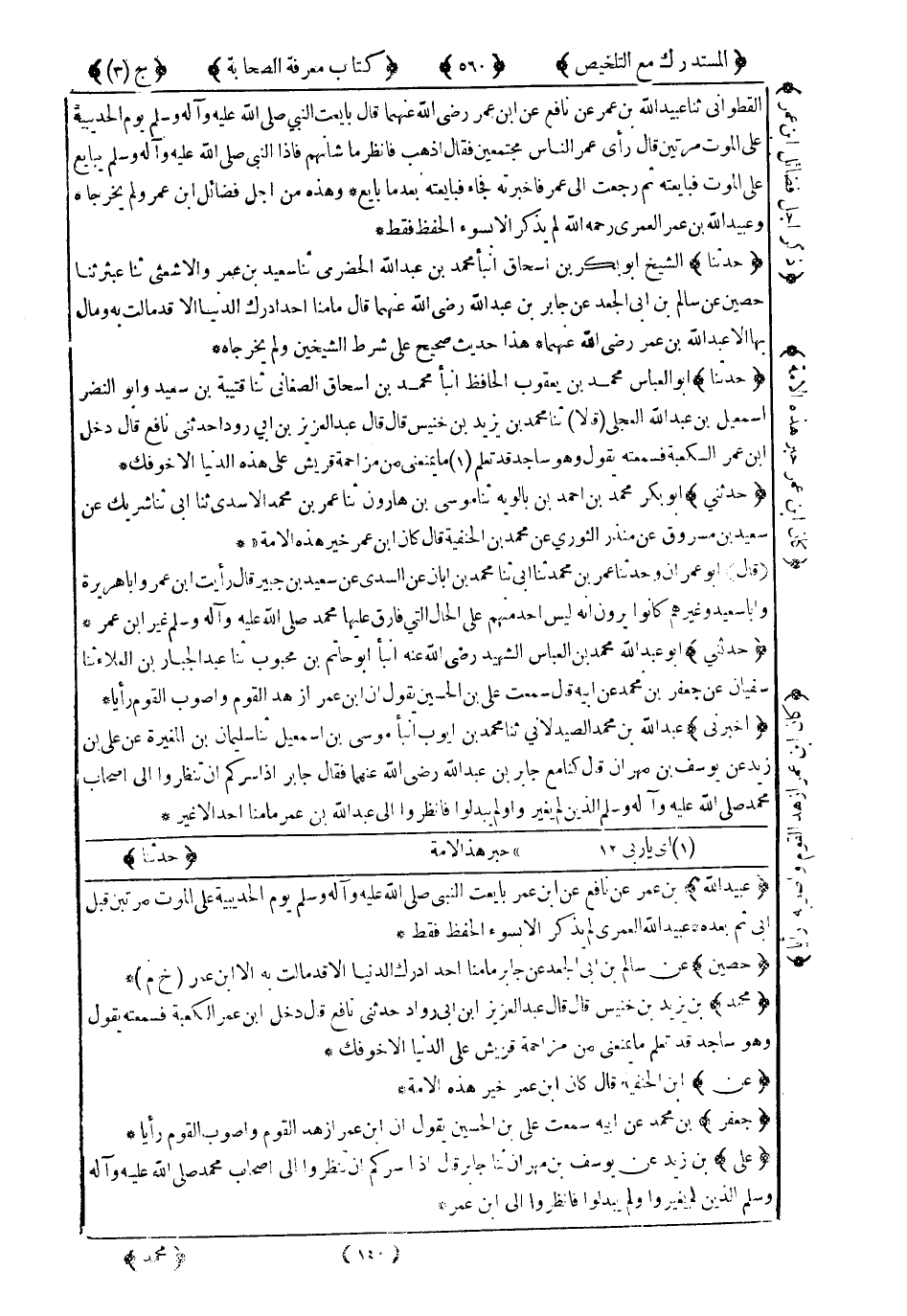 6372- حَدَّثَنِي أَبُو عَبْدِ اللهِ مُحَمَّدُ بْنُ الْعَبَّاسِ الشَّهِيدُ رَضِيَ اللَّهُ عَنْهُ ، أَنْبَأَ أَبُو حَاتِمِ بْنُ مَحْبُوبٍ ، حَدَّثَنَا عَبْدُ الْجَبَّارِ بْنُ الْعَلاَءِ ، حَدَّثَنَا سُفْيَانُ ، عَنْ جَعْفَرِ بْنِ مُحَمَّدٍ ، عَنْ أَبِيهِ ، قَالَ : سَمِعْتُ عَلِيَّ بْنَ الْحُسَيْنِ يَقُولُ : إِنَّ ابْنَ عُمَرَ أَزْهَدُ الْقَوْمِ وَأَصْوَبُ الْقَوْمِ رَأْيًا.