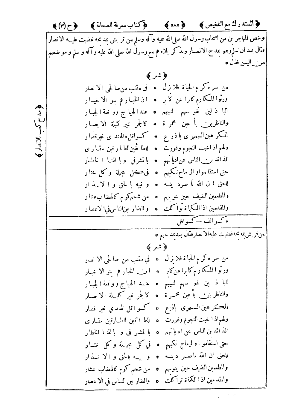 وَخَصَّ الْمُهَاجِرِينَ مِنْ أَصْحَابِ رَسُولِ اللهِ صَلَّى اللَّهُ عَلَيْهِ وَسَلَّمَ مِنْ قُرَيْشٍ بِمَدِيحِهِ غَضِبَتْ عَلَيْهِ الأَنْصَارُ ، فَقَالَ : بَعْدَ أَنْ أَسْلَمَ وَهُوَ يَمْدَحُ الأَنْصَارَ وَيُذْكَرُ بَلاَءَهُمْ مَعَ رَسُولِ اللهِ صَلَّى اللَّهُ عَلَيْهِ وَسَلَّمَ وَمَوْضِعَهُمْ مِنَ الْيَمَنْ ، فَقَالَ: