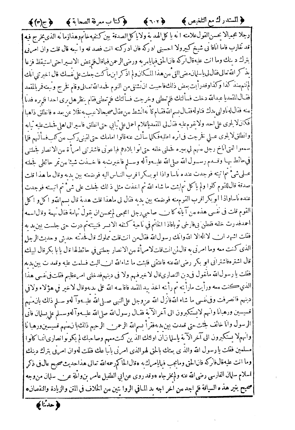 قَالَ الْحَاكِمُ رَحِمَهُ اللَّهُ تَعَالَى : هَذَا حَدِيثٌ صَحِيحٌ عَالٍ فِي ذِكْرِ إِسْلاَمِ سَلْمَانَ الْفَارِسِيِّ رَضِيَ اللَّهُ عَنْهُ ، وَلَمْ يُخَرِّجَاهُ .