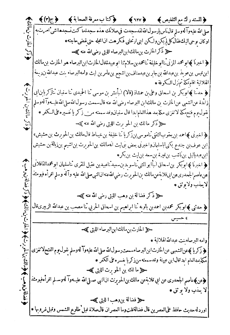 ذِكْرُ الْحَارِثِ بْنِ مَالِكِ ابْنِ الْبَرْصَاءِ اللَّيْثِيِّ رَضِيَ اللَّهُ عَنْهُ