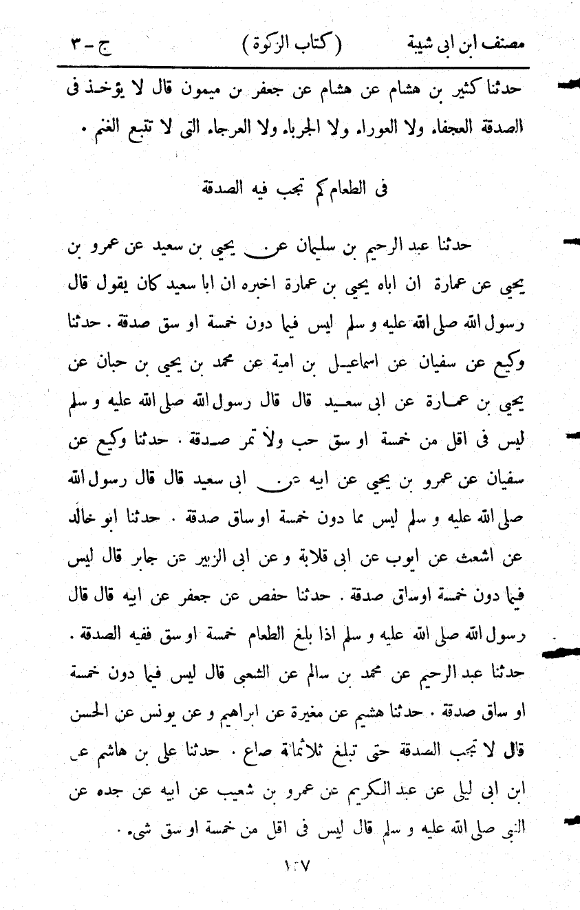 27- فِي الطِّعَامِ ، كَمْ تَجِبُ فِيهِ الصَّدَقَةُ ؟.