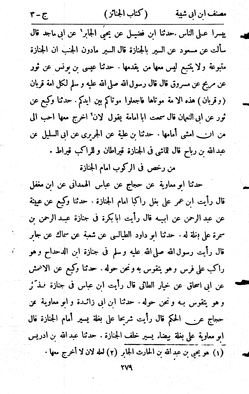 11362- حَدَّثَنَا أَبُو بَكْرِ بْنُ عَيَّاشٍ عَنْ أَبِي إِسْحَاقَ ، عَنْ جُبَارٍ الطَّائِيِّ ، قَالَ : رَأَيْتُ ابْنَ عَبَّاسٍ فِي جِنَازَةٍ , فَذَكَرَ نَحْوَه.