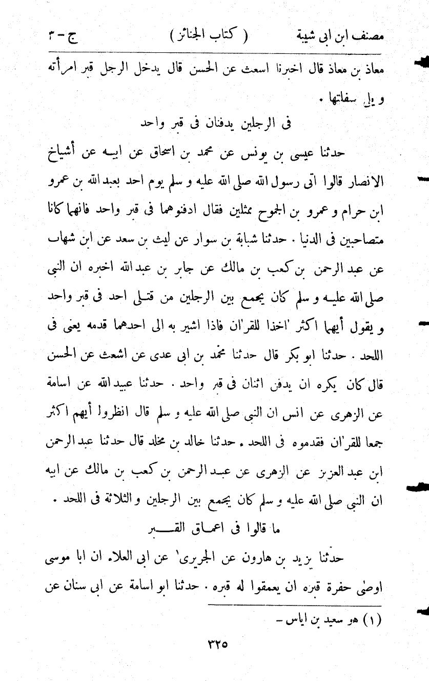 119- في الرجلين يُدْفَنَانِ فِي قَبْرٍ وَاحِدٍ.
