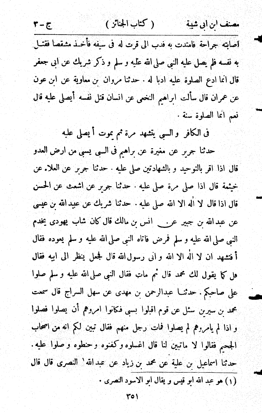 11991- حدَّثَنَا جَرِيرٌ ، عَنْ مُغِيرَةَ ، عَنْ أصحَابِه ، عَنْ إبْرَاهِيمَ فِي السَّبِيِّ يُسْبَى مِنْ أَرْضِ الْعَدُو ، وَقَالَ : إذَا أَقَرَّ بِالتَّوْحِيدِ وَبِالشَّهَادَتَيْنِ صُلِّيَ عَلَيْهِ.