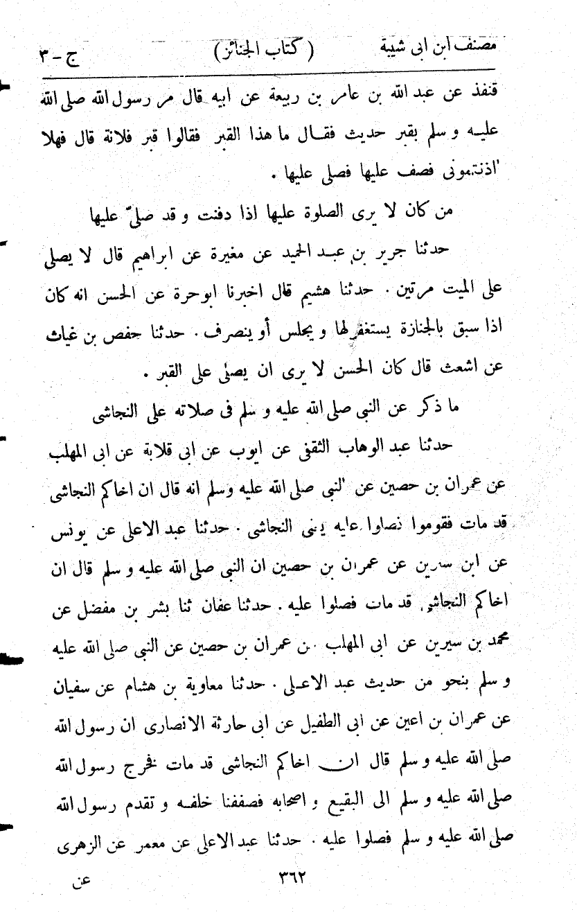 12073- حدَّثَنَا عَبْدُ الْوَهَّابِ الثَّقَفِيُّ ، عَنْ أَيُّوبَ ، عَنْ أَبِي قِلاَبَةَ ، عَنْ أَبِي الْمُهَلَّبِ ، عَنْ عِمْرَانَ بْنِ حُصَيْنٍ ، عَنِ النَّبِيِّ صلى الله عليه وسلم ، أَنَّهُ قَالَ : إنَّ أَخًا لَكُمْ قَدْ مَاتَ , فَقُومُوا فَصَلُّوا عَلَيْهِ , يَعْنِي النَّجَاشِيَّ.