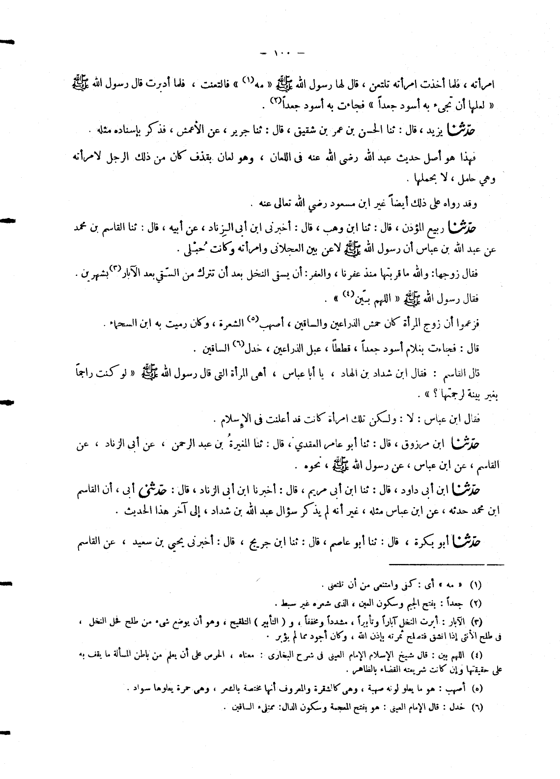 4661 - حَدَّثَنَا رَبِيعٌ الْمُؤَذِّنُ , قَالَ: ثنا ابْنُ وَهْبٍ , قَالَ: أَخْبَرَنِي ابْنُ أَبِي الزِّنَادِ , عَنْ أَبِيهِ , قَالَ: ثنا الْقَاسِمُ بْنُ مُحَمَّدٍ , عَنْ عَبْدِ اللهِ بْنِ عَبَّاسٍ " أَنَّ رَسُولَ اللهِ صَلَّى اللَّهُ عَلَيْهِ وَسَلَّمَ لَاعَنَ بَيْنَ الْعَجْلَانِيِّ وَامْرَأَتِهِ وَكَانَتْ حُبْلَى. فَقَالَ زَوْجُهَا: وَاللهِ مَا قَرُبْتُهَا مُنْذُ عَفَرْنَا , وَالْعَفْرُ: أَنْ يُسْقَى النَّخْلُ بَعْدَ أَنْ تُتْرَكَ مِنَ السَّقْيِ بَعْدَ الْإِبَارِ بِشَهْرَيْنِ. فَقَالَ رَسُولُ اللهِ صَلَّى اللَّهُ عَلَيْهِ وَسَلَّمَ: «§اللهُمَّ بَيِّنْ» فَزَعَمُوا أَنَّ زَوْجَ الْمَرْأَةِ كَانَ حَمْشَ الذِّرَاعَيْنِ وَالسَّاقَيْنِ , أَصْهَبَ الشَّعَرَةِ , وَكَانَ الَّذِي رُمِيَتْ بِهِ ابْنُ السَّحْمَاءِ قَالَ: فَجَاءَتْ بِغُلَامٍ أَسْوَدَ جَعْدٍ , قَطَطٍ , عَبْلِ الذِّرَاعَيْنِ , خَدْلِ السَّاقَيْنِ. قَالَ الْقَاسِمُ: فَقَالَ ابْنُ شَدَّادِ بْنِ الْهَادِ , يَا أَبَا عَبَّاسٍ , أَهِيَ الْمَرْأَةُ الَّتِي قَالَ رَسُولُ اللهِ صَلَّى اللَّهُ عَلَيْهِ وَسَلَّمَ: «لَوْ كُنْتُ رَاجِمًا بِغَيْرِ بَيِّنَةٍ لَرَجَمْتُهَا؟» فَقَالَ ابْنُ عَبَّاسٍ: لَا: وَلَكِنْ تِلْكَ امْرَأَةٌ كَانَتْ قَدْ أَعْلَنَتْ فِي الْإِسْلَامِ ".