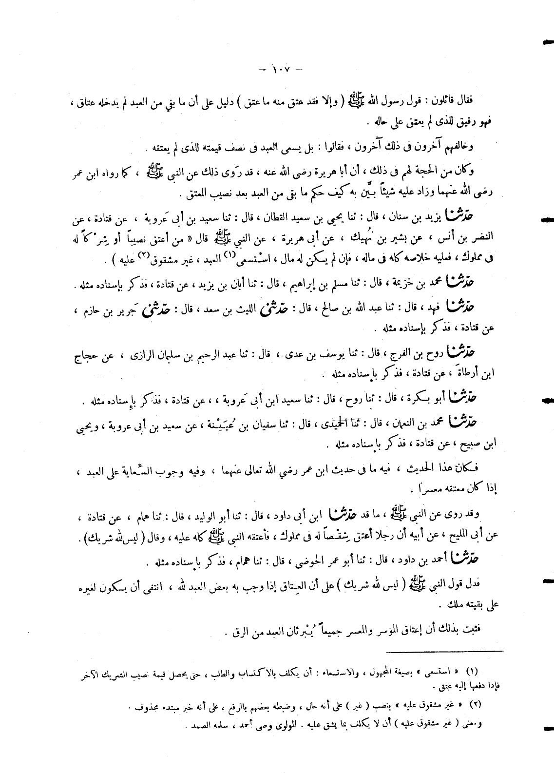 4692 - حَدَّثَنَا ابْنُ أَبِي دَاوُدَ , قَالَ: ثنا أَبُو الْوَلِيدِ , قَالَ: ثنا هَمَّامٌ , عَنْ قَتَادَةَ , عَنْ أَبِي الْمَلِيحِ , عَنْ أَبِيهِ: " أَنَّ رَجُلًا أَعْتَقَ شِقْصًا لَهُ فِي مَمْلُوكٍ , فَأَعْتَقَهُ النَّبِيُّ صَلَّى اللَّهُ عَلَيْهِ وَسَلَّمَ كُلَّهُ عَلَيْهِ , وَقَالَ: «§لَيْسَ لِلَّهِ شَرِيكٌ» .