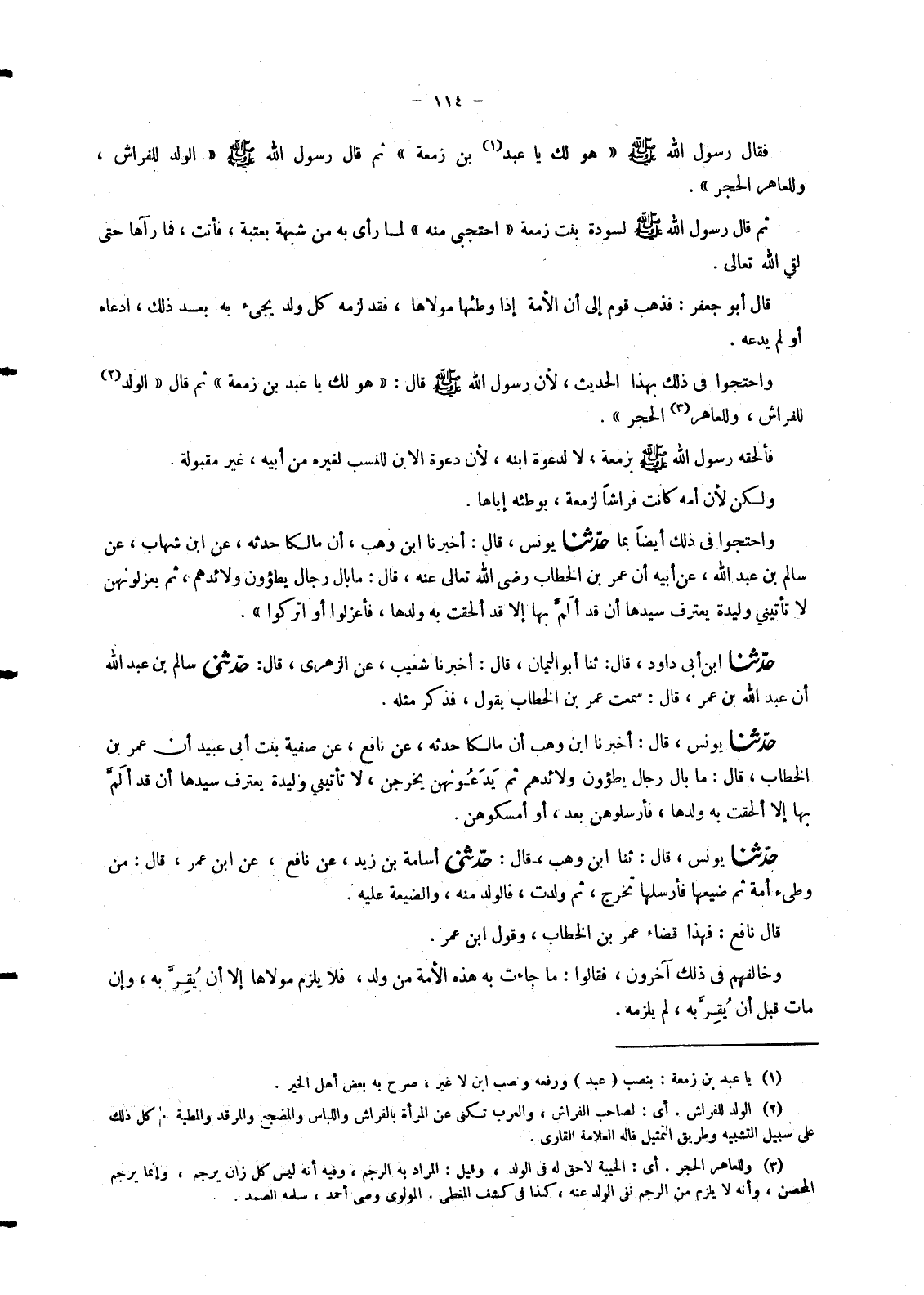 4729 - حَدَّثَنَا يُونُسُ , قَالَ: ثنا ابْنُ وَهْبٍ , قَالَ: حَدَّثَنِي أُسَامَةُ بْنُ زَيْدٍ , عَنْ نَافِعٍ , عَنِ ابْنِ عُمَرَ , قَالَ: §مَنْ وَطِئَ أَمَةً ثُمَّ ضَيَّعَهَا فَأَرْسَلَهَا تَخْرُجُ , ثُمَّ وَلَدَتْ , فَالْوَلَدُ مِنْهُ , وَالضَّيْعَةُ عَلَيْهِ. قَالَ نَافِعٌ: فَهَذَا قَضَاءُ عُمَرَ بْنِ الْخَطَّابِ , وَقَوْلُ ابْنِ عُمَرَ وَخَالَفَهُمْ فِي ذَلِكَ آخَرُونَ , فَقَالُوا: مَا جَاءَتْ بِهِ هَذِهِ الْأَمَةُ مِنْ وَلَدٍ , فَلَا يَلْزَمُ مَوْلَاهَا إِلَّا أَنْ يُقِرَّ بِهِ , وَإِنْ مَاتَ قَبْلَ أَنْ يُقِرَّ بِهِ , لَمْ يَلْزَمْهُ. -[115]- وَكَانَ مِنَ الْحُجَّةِ لَهُمْ فِي الْحَدِيثِ الْأَوَّلِ , «أَنَّ رَسُولَ اللهِ صَلَّى اللَّهُ عَلَيْهِ وَسَلَّمَ إِنَّمَا قَالَ لِعَبْدِ بْنِ زَمْعَةَ هُوَ لَكَ يَا عَبْدُ بْنُ زَمْعَةَ وَلَمْ يَقُلْ هُوَ أَخُوكَ» فَقَدْ يَجُوزُ أَنْ يَكُونَ أَرَادَ بِقَوْلِهِ «هُوَ لَكَ» أَيْ: هُوَ مَمْلُوكٌ لَكَ , لِحَقِّ مَالِكٍ عَلَيْهِ مِنَ الْيَدِ , وَلَمْ يَحْكُمْ فِي نَسَبِهِ بِشَيْءٍ. وَالدَّلِيلُ عَلَى ذَلِكَ , أَنَّ رَسُولَ اللهِ صَلَّى اللَّهُ عَلَيْهِ وَسَلَّمَ قَدْ أَمَرَ سَوْدَةَ بِنْتَ زَمْعَةَ بِالْحِجَابِ مِنْهُ. فَلَوْ كَانَ النَّبِيُّ صَلَّى اللَّهُ عَلَيْهِ وَسَلَّمَ كَانَ قَدْ جَعَلَهُ ابْنَ زَمْعَةَ إِذًا لَمَا حَجَبَ بِنْتَ زَمْعَةَ مِنْهُ , لِأَنَّهُ صَلَّى اللَّهُ عَلَيْهِ وَسَلَّمَ لَمْ يَكُنْ يَأْمُرْ بِقَطْعِ الْأَرْحَامِ بَلْ كَانَ يَأْمُرُ بِصِلَتِهَا , وَمِنْ صِلَتِهَا , التَّزَاوُرُ , فَكَيْفَ يَجُوزُ أَنْ يَأْمُرَهَا وَقَدْ جَعَلَهُ أَخَاهَا بِالْحِجَابِ مِنْهُ؟ ". هَذَا لَا يَجُوزُ عَلَيْهِ صَلَّى اللَّهُ عَلَيْهِ وَسَلَّمَ. وَكَيْفَ يَجُوزُ ذَلِكَ عَلَيْهِ , وَهُوَ يَأْمُرُ عَائِشَةَ رَضِيَ اللهُ تَعَالَى عَنْهَا أَنْ تَأْذَنَ لِعَمِّهَا مِنَ الرَّضَاعَةِ عَلَيْهَا , ثُمَّ يَحْجُبُ سَوْدَةَ مِمَّنْ قَدْ جَعَلَهُ أَخَاهَا وَابْنَ أَبِيهَا؟ , وَلَكِنَّ وَجْهَ ذَلِكَ - عِنْدَنَا وَاللهُ أَعْلَمُ - أَنَّهُ لَمْ يَكُنْ حَكَمَ فِيهِ بِشَيْءٍ غَيْرِ الْيَدِ , الَّتِي جَعَلَهُ بِهَا لِعَبْدِ بْنِ زَمْعَةَ , وَلِسَائِرِ وَرَثَةِ زَمْعَةَ دُونَ سَعْدٍ فَإِنْ قَالَ قَائِلٌ: فَمَا مَعْنَى قَوْلِهِ الَّذِي وَصَلَهُ بِهَذَا «الْوَلَدُ لِلْفِرَاشِ , وَلِلْعَاهِرِ الْحَجَرُ» قِيلَ لَهُ: ذَلِكَ عَلَى التَّعْلِيمِ مِنْهُ لِسَعْدٍ , أَيْ أَنَّكَ تَدَّعِي لِأَخِيكَ , وَأَخُوكَ لَمْ يَكُنْ لَهُ فِرَاشٌ , وَإِنَّمَا يَثْبُتُ النَّسَبُ مِنْهُ لَوْ كَانَ لَهُ فِرَاشٌ , فَإِذَا لَمْ يَكُنْ لَهُ فِرَاشٌ , فَهُوَ عَاهِرٌ , وَلِلْعَاهِرِ الْحَجَرُ. وَقَدْ بَيَّنَ هَذَا الْمَعْنَى وَكَشَفَهُ , مَا قَدْ