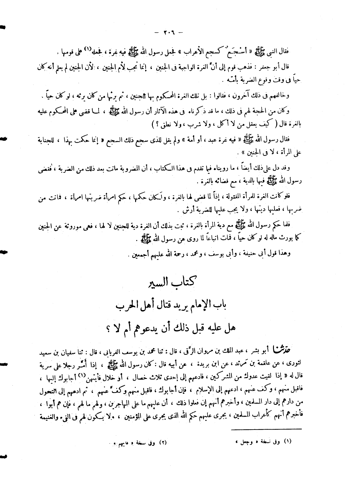 §بَابُ الْإِمَامِ يُرِيدُ قِتَالَ أَهْلِ الْحَرْبِ هَلْ عَلَيْهِ قَبْلَ ذَلِكَ أَنْ يَدْعُوَهُمْ أَمْ لَا؟