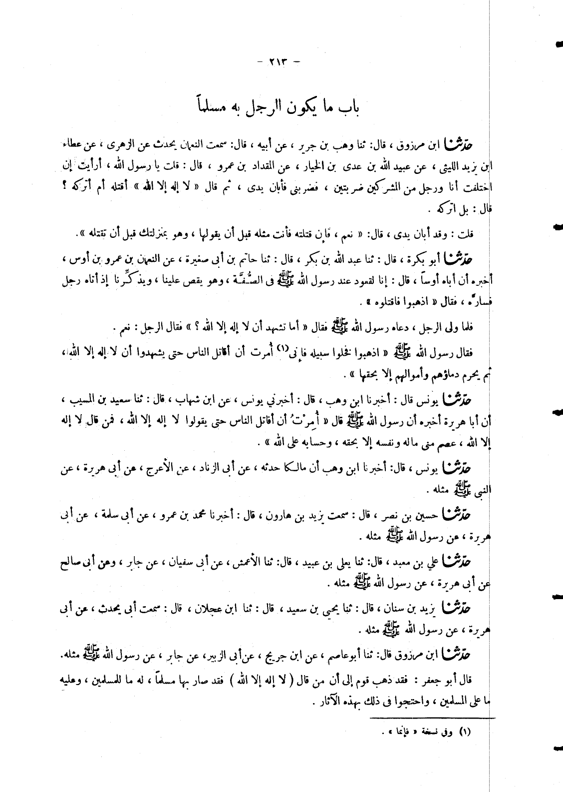 §بَابُ مَا يَكُونُ الرَّجُلُ بِهِ مُسْلِمًا