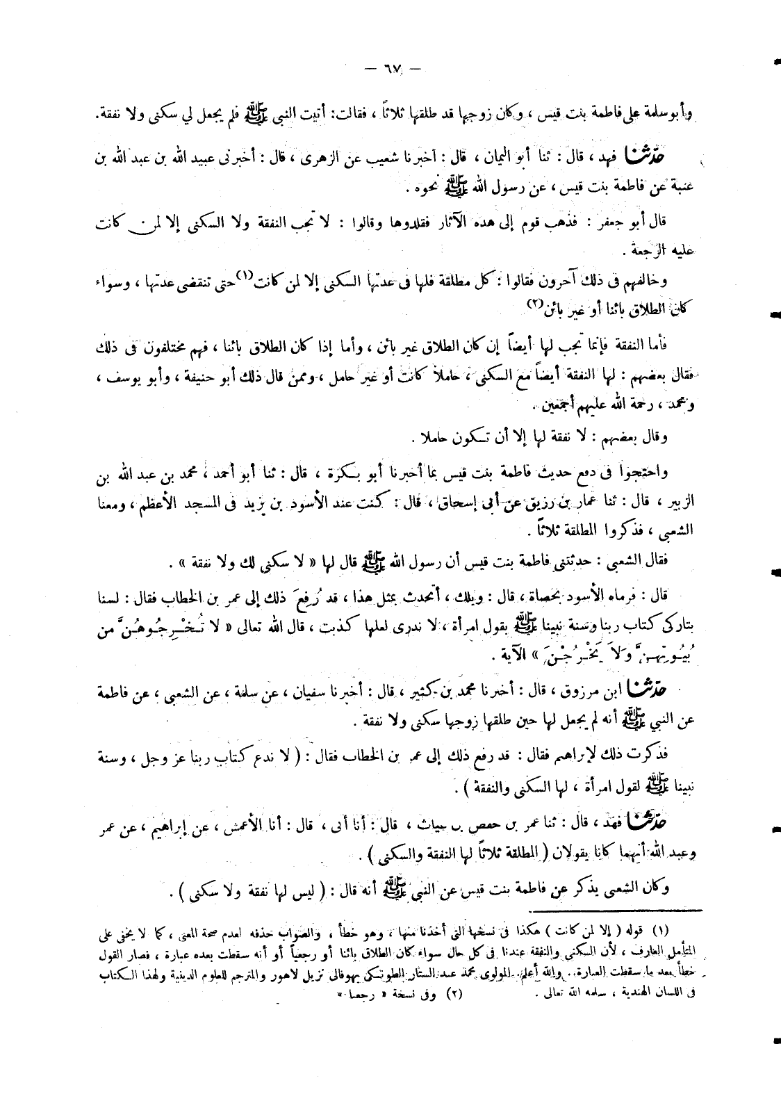 4522 - حَدَّثَنَا ابْنُ مَرْزُوقٍ , قَالَ أَخْبَرَنَا مُحَمَّدُ بْنُ كَثِيرٍ , قَالَ أَخْبَرَنَا سُفْيَانُ , عَنْ سَلَمَةَ , عَنِ الشَّعْبِيِّ , عَنْ فَاطِمَةَ , عَنِ النَّبِيِّ صَلَّى اللَّهُ عَلَيْهِ وَسَلَّمَ «§أَنَّهُ لَمْ يَجْعَلْ لَهَا حِينَ طَلَّقَهَا زَوْجُهَا سُكْنَى وَلَا نَفَقَةً» . فَذَكَرَتْ ذَلِكَ لِإِبْرَاهِيمَ , فَقَالَ: قَدْ رُفِعَ ذَلِكَ إِلَى عُمَرَ بْنِ الْخَطَّابِ فَقَالَ: «لَا نَدَعُ كِتَابَ رَبِّنَا عَزَّ وَجَلَّ , وَسُنَّةَ نَبِيِّنَا صَلَّى اللَّهُ عَلَيْهِ وَسَلَّمَ لِقَوْلِ امْرَأَةٍ , لَهَا السُّكْنَى وَالنَّفَقَةُ»