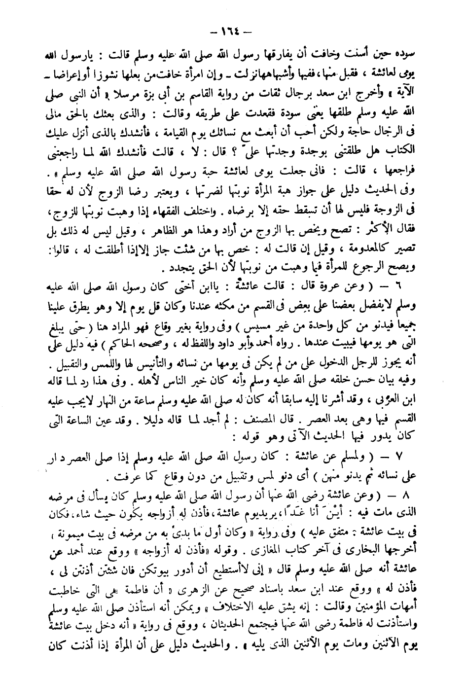 7- ولمسلم عن عائشة رضي الله عنها "كان رسول الله صلى الله عليه وسلم إذا صلى العصر دار على نسائه ثم يدنوا منهن" أي دنو لمس وتقبيل من دون وقاع كما عرفت