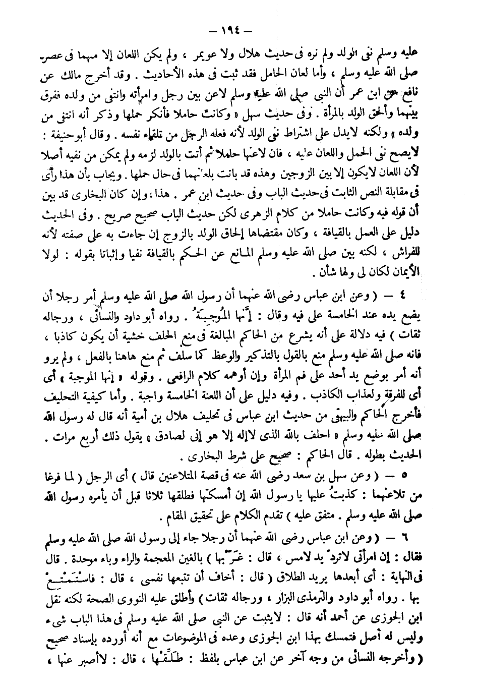 4- وعن ابن عباس رضي الله عنهما "أن رسول الله صلى الله عليه وسلم أمر رجلا أن يضع يده عند الخامسة على فيه وقال إنها الموجبة" رواه أبو داود والنسائي ورجاله ثقات فيه دلالة على أنه يشرع من الحاكم المبالغة في منع الحلف خشية أن يكون كاذبا فإنه صلى الله عليه وسلم منع بالقول بالتذكير والوعظ كما سلف ثم منع هاهنا بالفعل ولم يرو أنه أمر بوضع يد أحد على فم المرأة وإن أوهمه كلام الرافعي وقوله إنها الموجبة أي للفرقة ولعذاب الكاذب وفيه دليل على أن اللعنة الخامسة واجبة وأما كيفية التحليف فأخرج الحاكم والبيهقي من حديث ابن عباس في تحليف هلال بن أمية أنه قال له رسول الله صلى الله عليه وسلم: "احلف بالذي لا إله إلا هو إني لصادق" يقول ذلك أربع مرات الحديث بطوله قال الحاكم صحيح على شرط البخاري