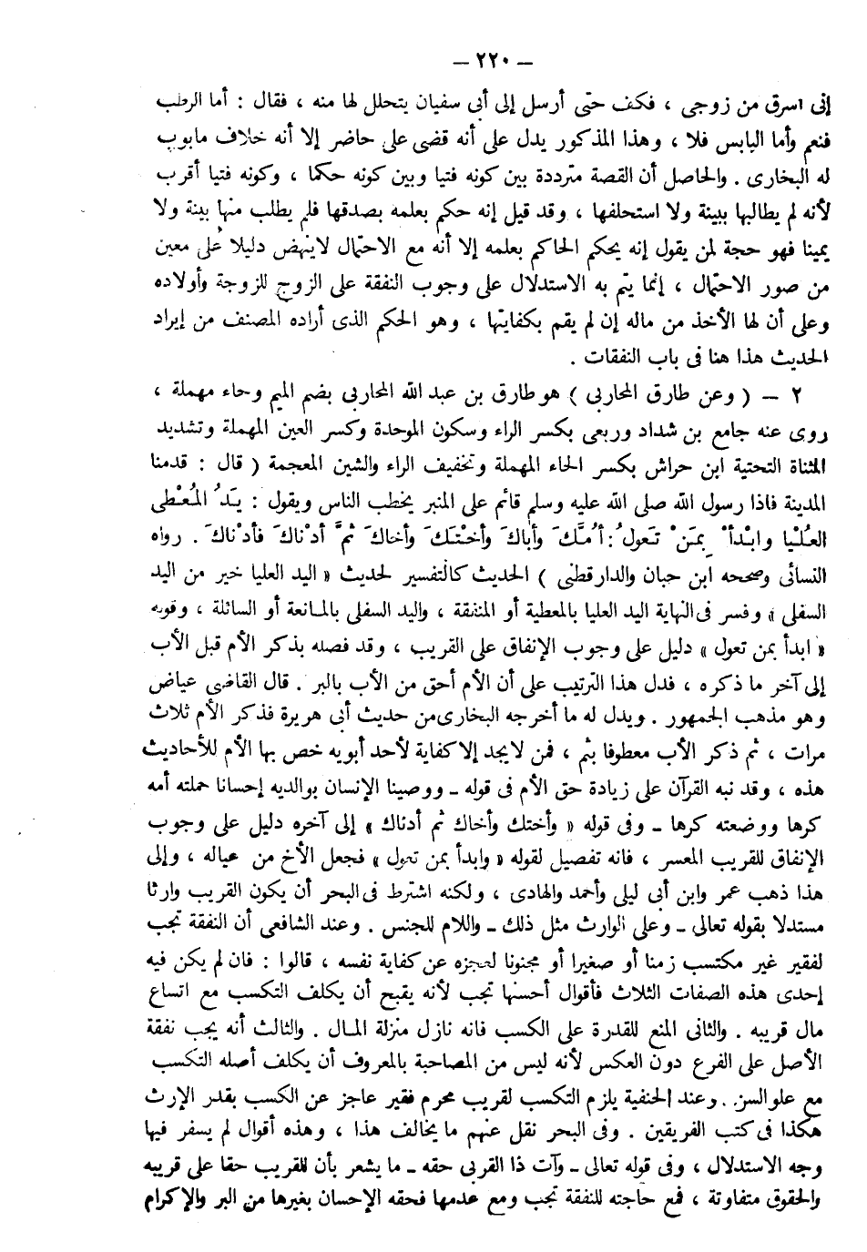 5- وعن جابر في حديث الحج بطوله قال في ذكر النساء "ولهن عليكم رزقهن وكسوتهن بالمعروف" أخرجه مسلم وهو دليل على وجوب النفقة والكسوة للزوجة كما دلت له الآية وهو مجمع عليه وقد تقدم تحقيقه وقوله بالمعروف إعلام بأنه لا يجب إلا ما تعورف من إنفاق كل على قدر حاله كما قال تعالى: {لِيُنْفِقْ ذُو سَعَةٍ مِنْ سَعَتِهِ وَمَنْ قُدِرَ عَلَيْهِ رِزْقُهُ فَلْيُنْفِقْ مِمَّا آتَاهُ اللَّهُ لا يُكَلِّفُ اللَّهُ نَفْساً إِلَّا مَا آتَاهَا} ثم الواجب لها طعام مصنوع لأنه الذي يصدق عليه أنه نفقة ولا تجب القيمة إلا برضا من يجب عليه الإنفاق وقد طول ذلك ابن القيم في الهدي النبوي واختاره وهو الحق فإنه قال ما لفظه وأما فرض