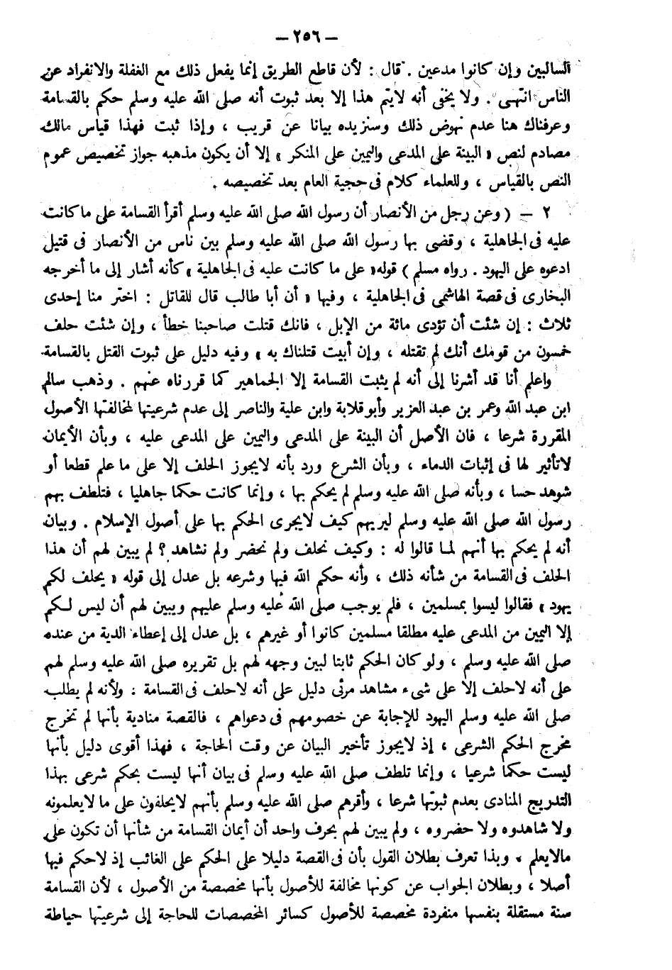 2- وعن رجل من الأنصار أن رسول الله صلى الله عليه وسلم أقر القسامة على ما كانت عليه في الجاهلية وقضى بها رسول الله صلى الله عليه وسلم بين ناس من الأنصار في قتيل ادعوه على اليهود رواه مسلم قوله على ما كانت عليه في الجاهلية كأنه أشار إلى ما أخرجه البخاري في قصة الهاشمي في الجاهلية وفيها أن أبا طالب قال للقاتل اختر منا إحدى ثلاث إن شئت أن تؤدي مائة من الإبل فإنك قتلت صاحبنا خطأ وإن شئت حلف خمسون من قومك أنك لم تقتله وإن أبيت قتلناك به وفيه دليل على ثبوت القتل بالقسامة واعلم أنا قد أشرنا إلى أنه لم يثبت القسامة إلا الجماهير كما قررناه عنهم وذهب سالم بن عبد الله وعمر بن عبد العزيز وأبو قلابة وابن علية والناصر إلى عدم شرعيتها لمخالفتها الأصول المقررة شرعا فإن الأصل أن البينة على المدعى عليه وبأن الأيمان لا تأثير لها في إثبات الدماء وبأن الشرع ورد بأنه لا يجوز الحلف إلا على ما علم قطعا أو شوهد حسا وبأنه صلى الله عليه وسلم لم يحكم بها وإنما كانت حكما جاهليا فتلطف بهم رسول الله صلى الله عليه وسلم ليريهم كيف لا يجري الحكم بها على أصول الإسلام وبيان أنه لم يحكم بها أنهم لما قالوا له وكيف نحلف ولم نحضر ولم نشاهد لم يبين لهم أن هذا الحلف في القسامة من شأنه ذلك وأنه حكم الله فيها وشرعه بل عدل إلى قوله يحلف لكم يهود فقالوا ليسوا بمسلمين فلم يوجب صلى الله عليه وسلم عليهم ويبين لهم أن ليس لكم إلا اليمين من المدعى عليهم مطلقا مسلمين كانوا أو غيرهم بل عدل إلى إعطائه الدية من عنده صلى الله عليه وسلم ولو كان الحكم ثابتا بها لبين وجهه لهم بل تقريره صلى الله عليه وسلم لهم على أنه لا حلف إلا على شيء مشاهد مرئي دليل على أنه لا حلف في القسامة ولأنه لم يطلب صلى الله عليه وسلم اليهود للإجابة عن خصومهم في دعواهم فالقصة منادية بأنها لم تخرج مخرج الحكم الشرعي إذا لا يجوز تأخير البيان عن وقت الحاجة فهذا أقوى دليل بأنها ليست حكما شرعيا وإنما تلطف صلى الله عليه وسلم في بيان أنها ليست بحكم شرعي بهذا التدريج المنادي بعدم ثبوتها شرعا وأقرهم صلى الله عليه وسلم بأنهم لا يحلفون على ما لا يعلمونه ولا شاهدوه ولا حضروه ولم يبين لهم بحرف واحد أن أيمان القسامة من شأنها أن تكون على ما لا يعلم وبذا تعرف بطلان القول بأن في القصة دليلا على الحكم على الغائب إذ لا حكم فيها أصلا وبطلان الجواب عن كونها مخالفة للأصول بأنها مخصصة من الأصول لأن القسامة سنة مستقلة بنفسها منفردة مخصصة للأصول كسائر المخصصات للحاجة إلى شرعيتها حياطة