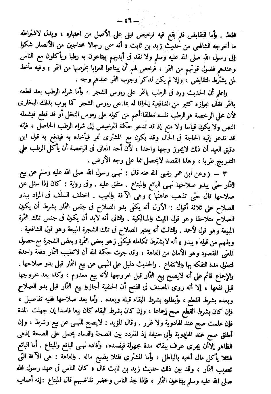 3- وعن ابن عمر رضي الله عنهما قال: "نهى رسول الله صلى الله عليه وسلم عن بيع الثمار حتى يبدو صلاحها نهى البائع والمبتاع" متفق عليه وفي رواية وكان إذا سئل عن صلاحها قال حتى تذهب عاهتها وهي الآفة والعيب اختلف السلف في المراد ببدو الصلاح على ثلاثة أقوال الأول أنه يكفي بدو الصلاح في جنس الثمار أن يكون الصلاح متلاحقا وهو قول الليث والمالكية والثاني أنه لا بد أن يكون في جنس تلك الثمرة المبيعة وهو قول لأحمد والثالث أنه يعتبر الصلاح في تلك الشجرة المبيعة وهو قول الشافعية ويفهم من قوله يبدو أنه لا يشترط تكامله فيكفي زهو بعض الثمارة وبعض الشجرة مع حصول المعنى المقصود وهو اختلفا من العاهة وقد جرت حكمة الله أن لا تطيب الثمار دفعة واحدة لتطول مدة التفكه بها والانتفاع والحديث دليل على النهي عن بيع الثمار قبل بدو صلاحها والإجماع قائم على أنه لا يصح بيع الثمار قبل خروجها لأنه بيع معدوم وكذا بعد خروجها قبل نفعها إلا أنه روى المصنف في الفتح أن الحنفية أجازوا بيع الثمار قبل بدو الصلاح وبعده بشرط القطع وأبطلوه بشرط البقاء قبله وبعده وأما بعد صلاحها ففيه تفاصيل فإن كان بشرط القطع صح إجماعا وإن كان بشرط البقاء كان بيعا فاسدا إن جهلت المدة فإن علمت صح عند الهادوية ولا غرر وقال المؤيد لا يصح للنهي عن بيع وشرط وإن أطلق صح عند الهادوية وأبي حنيفة إذ المتردد بين الصحة والفساد يحمل على الصحة إذ هي الظاهر إلا أن يجري عرف ببقائه مدة مجهولة فيفسده وأفاد نهي البائع والمبتاع أما البائع فلئلا يأكل مال أخيه بالباطل وأما المشتري فلئلا يضيع ماله والعاهة هي الآفة التي تصيب الثمار وقد بين ذلك حديث زيد بن ثابت قال "كان الناس في عهد رسول الله صلى الله عليه وسلم يتبايعون الثمار فإذا جذ الناس وحضر تقاضيهم قال المبتاع إنه أصاب