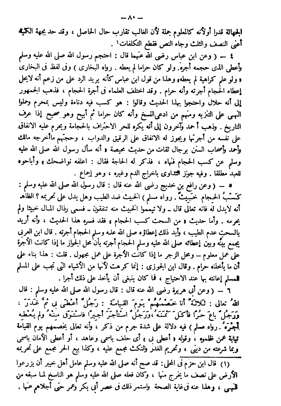 4- وعن ابن عباس رضي الله عنهما قال: "احتجم رسول الله صلى الله عليه وسلم وأعطى الذي حجمه أجره ولو كان حراما لم يعطه" رواه البخاري وفي لفظ في البخاري ولو علم كراهية لم يعطه وهذا من قول ابن عباس كأنه يريد الرد على من زعم أنه لا يحل إعطاء الحجام أجرته وأنه حرام وقد اختلف العلماء في أجرة الحجام فذهب الجمهور إلى أنه حلال احتجوا بهذا الحديث وقالوا هو كسب فيه دناءة وليس بمحرم وحملوا النهي على التنزيه ومنهم من ادعى النسخ وأنه كان حراما ثم أبيح وهو صحيح إذا عرف التاريخ وذهب أحمد وآخرون إلى أنه يكره للحر الاحتراف بالحجامة ويحرم عليه الإنفاق على نفسه من أجرتها ويجوز له الإنفاق على الرقيق والدواب وحجتهم ما أخرجه مالك وأحمد وأصحاب السنن برجال ثقات من حديث محيصة "أنه سأل رسول الله صلى الله عليه وسلم عن كسب الحجام فنهاه فذكر له الحاجة فقال اعلفه نواضحك" وأباحوه للعبد مطلقا وفيه جواز التداوي بإخراج الدم وغيره وهو إجماع