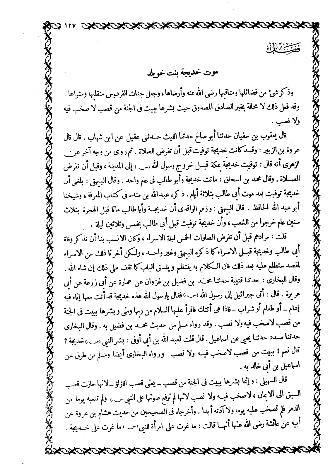 فصل في موت خَدِيجَةَ بِنْتِ خُوَيْلِدٍ