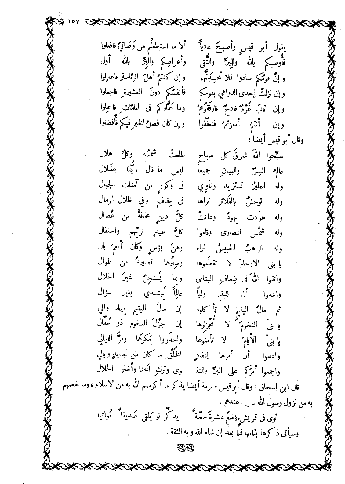 قَالَ ابْنُ إِسْحَاقَ: وَقَالَ أَبُو قَيْسٍ صِرْمَةُ أَيْضًا يَذْكُرُ مَا أَكْرَمَهُمُ اللَّهُ بِهِ مِنَ الْإِسْلَامِ، وَمَا خَصَّهُمْ بِهِ مِنْ نُزُولِ رَسُولِ اللَّهِ صَلَّى اللَّهُ عَلَيْهِ وَسَلَّمَ عِنْدَهُمْ.
