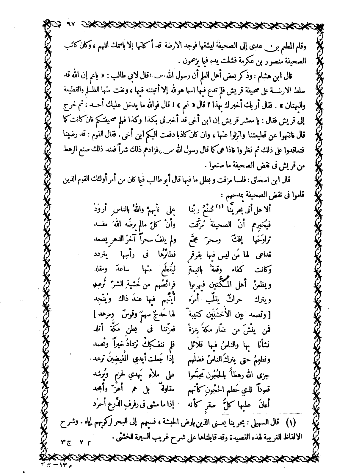 [1] قال السهيليّ: بحرينا يعنى الذين بأرض الحبشة، نسبهم إلى البحر لركوبهم إياه. وشرح الألفاظ الغريبة لهذا القصيدة وقد قابلناها على شرح غريب السيرة للخشنى.