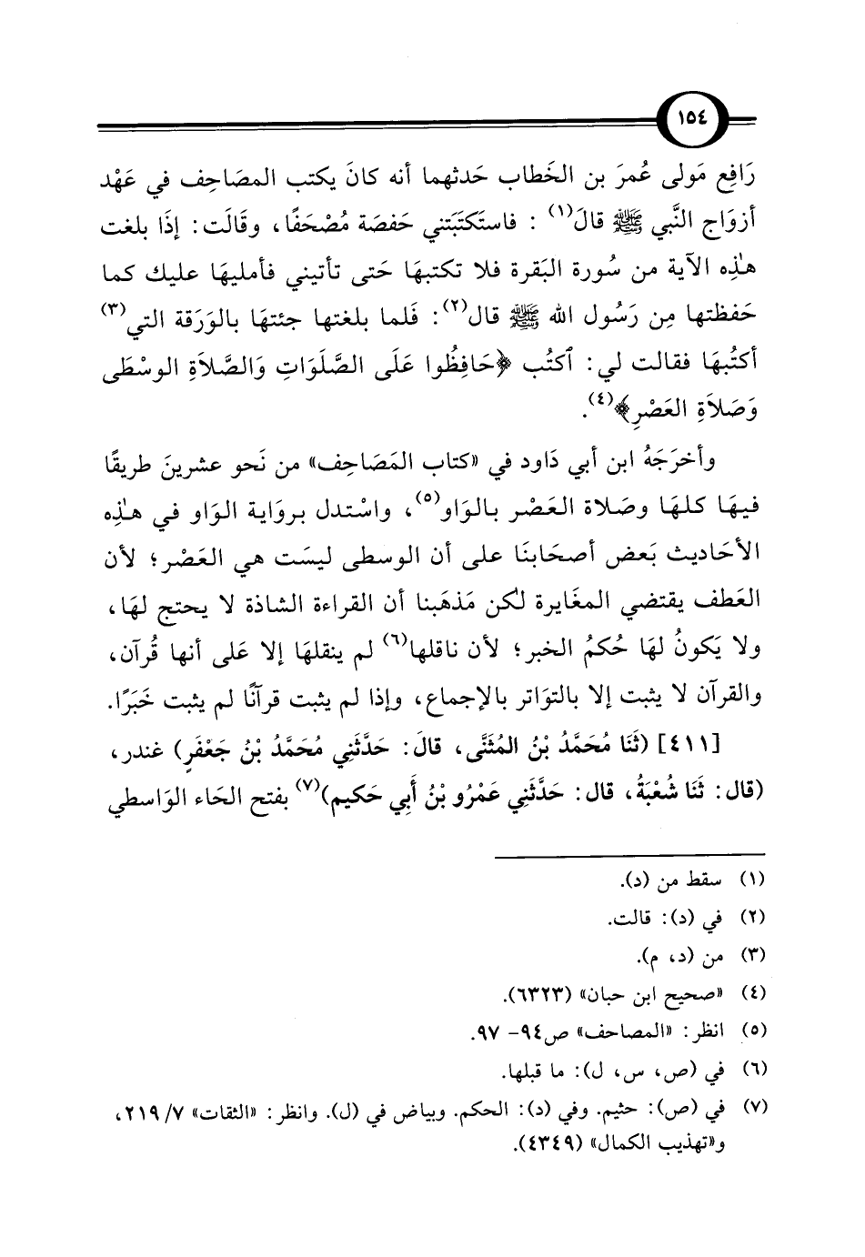 وأخرَجَهُ ابن أبي دَاود في "كتاب المَصَاحِف" من نَحو عشرينَ طريقًا فيهَا كلهَا وصَلاة العَصر بالوَاو (¬5)، واسْتدل بروَاية الوَاو في هذِه الأحَاديث بَعض أصحَابنَا على أن الوسطى ليسَت هي العَصْر؛ لأن العَطف يقتضي المغَايرة لكن مَذهَبنا أن القراءة الشاذة لا يحتج لهَا، ولا يَكونُ لهَا حُكمُ الخبر؛ لأن ناقلها (¬6) لم ينقلهَا إلا عَلى أنها قُرآن، والقرآن لا يثبت إلا بالتوَاتر بالإجماع، وإذا لم يثبت قرآنًا لم يثبت خَبَرًا.