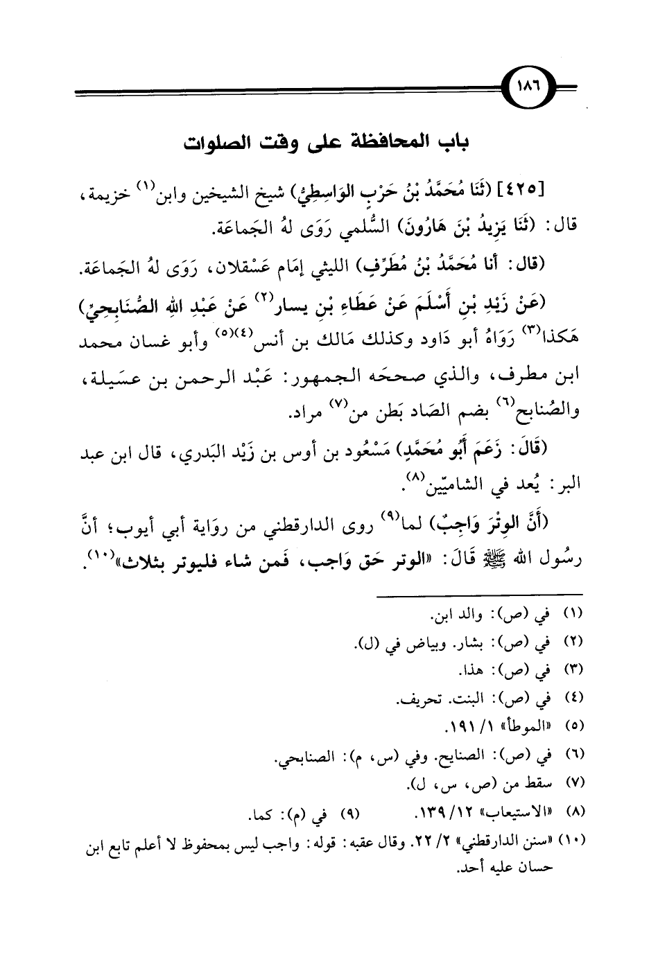 [425] (ثَنَا مُحَمَّدُ بْنُ حَرْبٍ الوَاسِطِيُّ) شيخ الشيخين وابن (¬1) خزيمة، قال: (ثَنَا يَزِيدُ بْنَ هَارُونَ) السُّلمي رَوَى لهُ الجَماعَة.