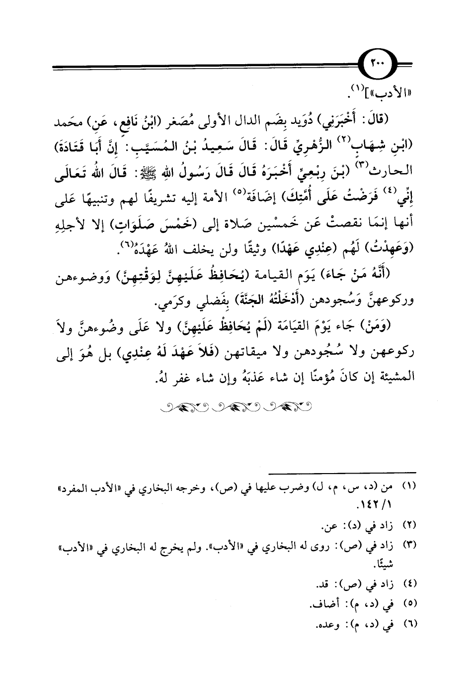 (¬1) من (د، س، م، ل) وضرب عليها في (ص)، وخرجه البخاري في "الأدب المفرد" 1/ 142.