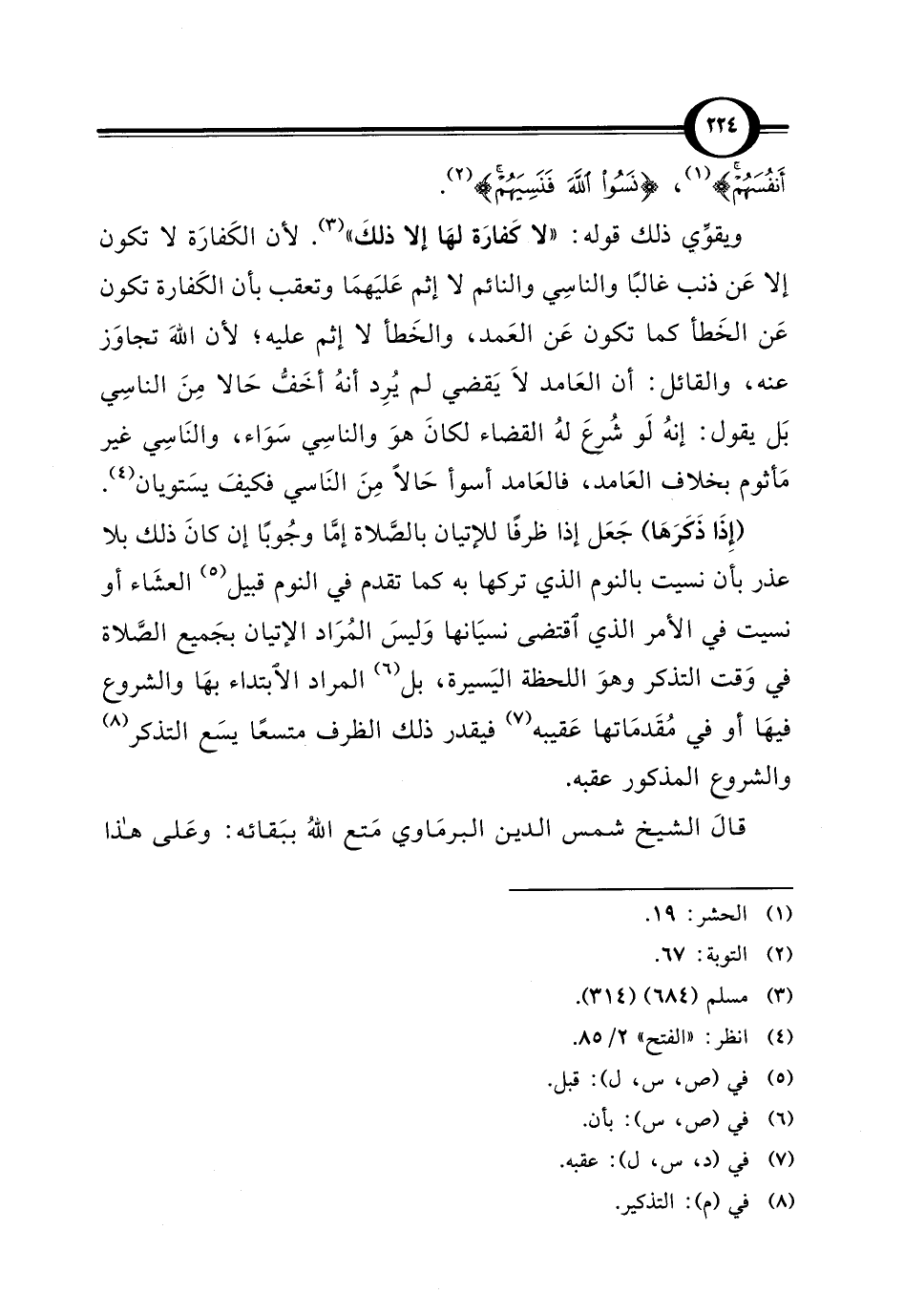 قالَ الشيخ شمس الدين البرمَاوي مَتع اللهُ ببَقائه: وعَلى هذا