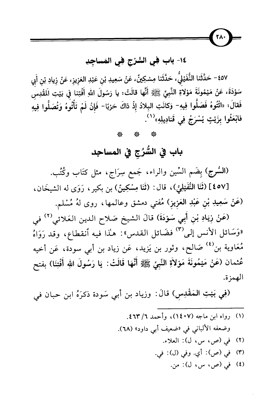 (فِي بَيتِ المَقْدِسِ) قالَ: وزياد بن أبي سَودة ذكرَهُ ابن حبان في