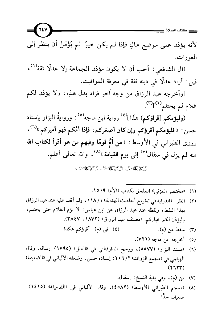 (¬2) انظر: "الدراية في تخريج أحاديث الهداية" 1/ 118، ولم أقف عليه عند عبد الرزاق بهذا اللفظ، ولفظه عند عبد الرزاق عن ابن عباس: لا يؤم الغلام حتى يحتلم، وليؤذن لكم خياركم. "مصنف عبد الرزاق" (1872، 3847).