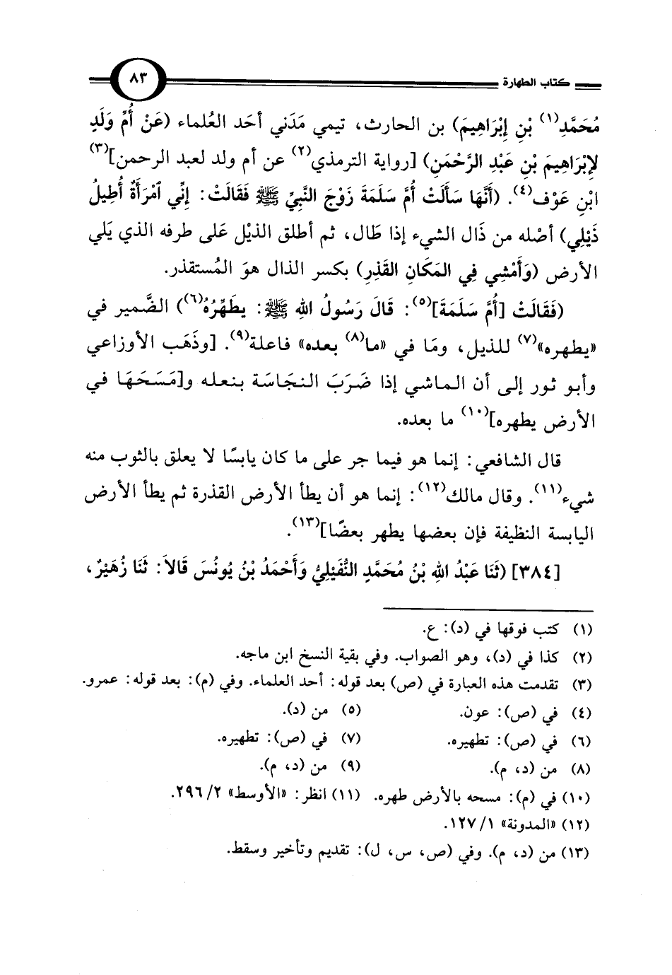 [384] (ثَنَا عَبْدُ الله بْنُ مُحَمَّدٍ النُّفَيْلِيُّ وَأَحْمَدُ بْنُ يُونُسَ قَالَا: ثَنَا زُهَيرٌ،