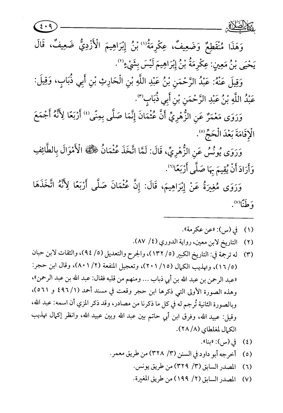 وَرَوَى مُغِيرَةُ عَنْ إِبْرَاهِيمَ، قَالَ: إِنَّ عُثْمَانَ صَلَّى أَرْبَعًا لِأَنَّهُ اتَّخَذَهَا وَطَنًا (¬7).