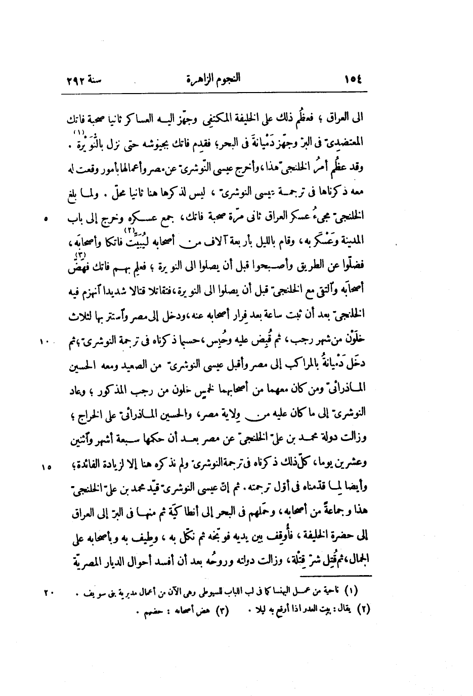 الى العراق؛ فعظم ذلك على الخليفة المكتفى وجهّز إليه العساكر ثانيا صحبة فاتك المعتضدىّ في البرّ وجهّز دميانة في البحر؛ فقدم فاتك بجيوشه حتى نزل بالنّويرة «1» .