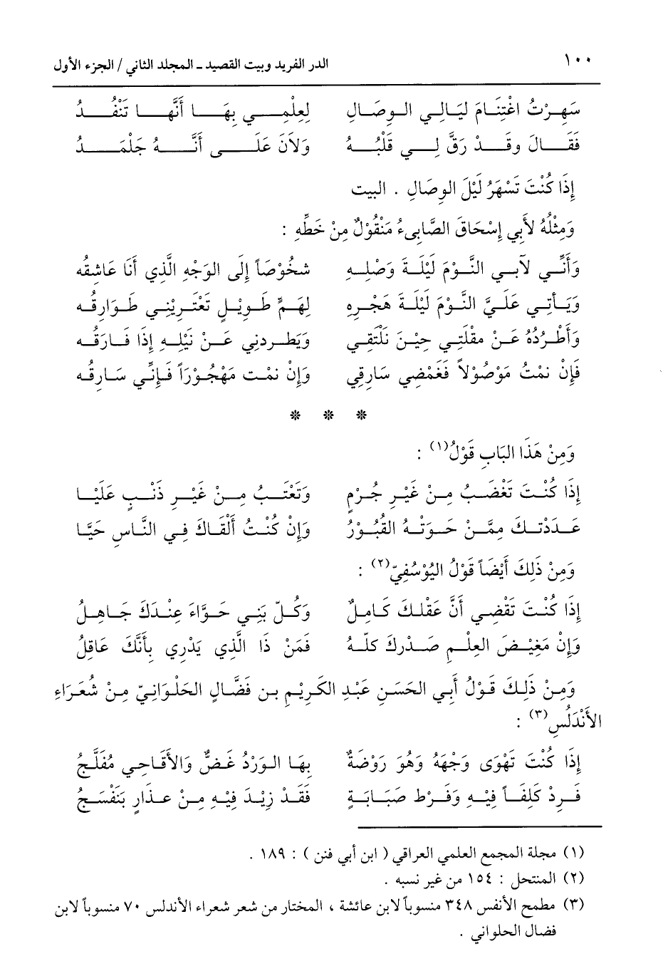 إِذَا كُنْتَ تَسْهَرُ لَيْلَ الوِصالِ. البيت