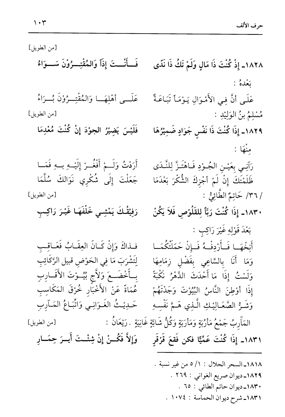 1828 - إِذْا كُنْتَ ذَا مَالٍ وَلَمْ تَكُ ذَا نَدًى ... فَأَنْتَ إِذًا وَالمُقْتِرُوْنَ سَوَاءُ