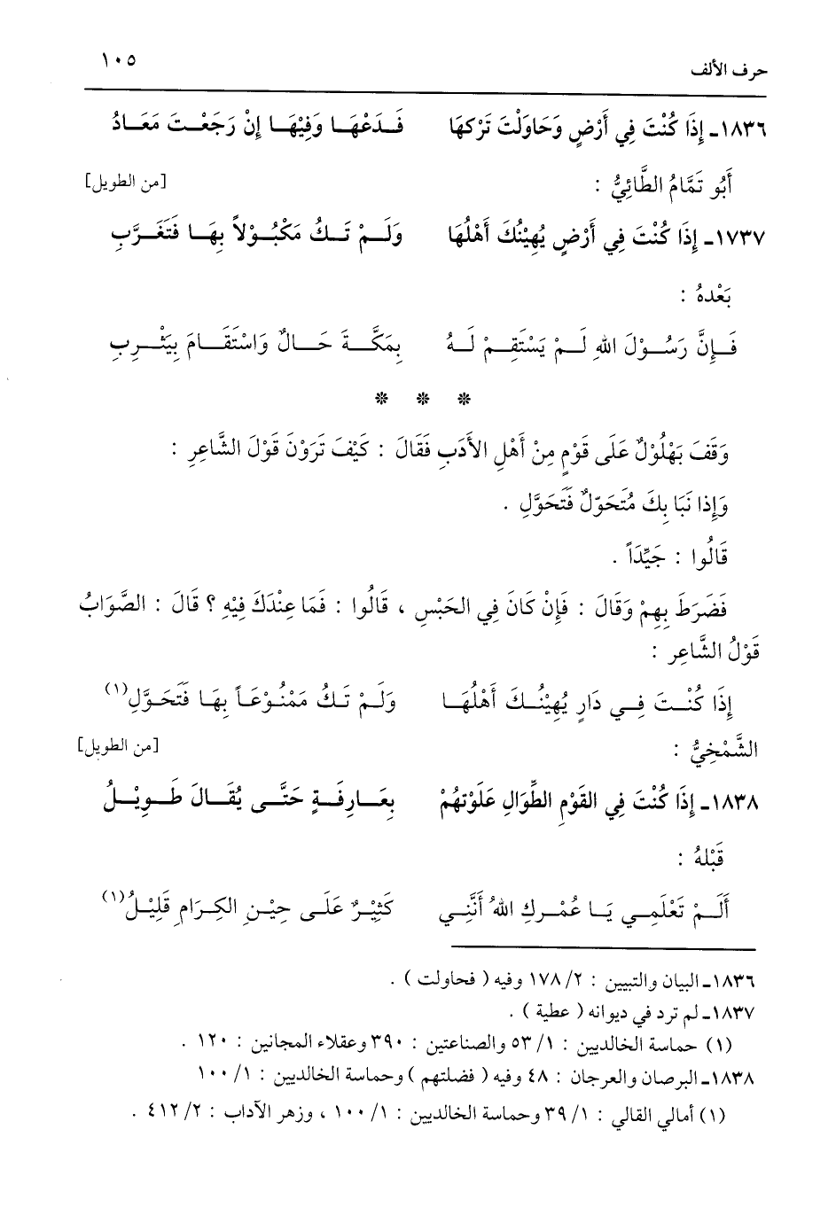 (¬1) أمالي القالي: 1/ 39 وحماسة الخالديين: 1/ 100، وزهر الآداب: 2/ 412.