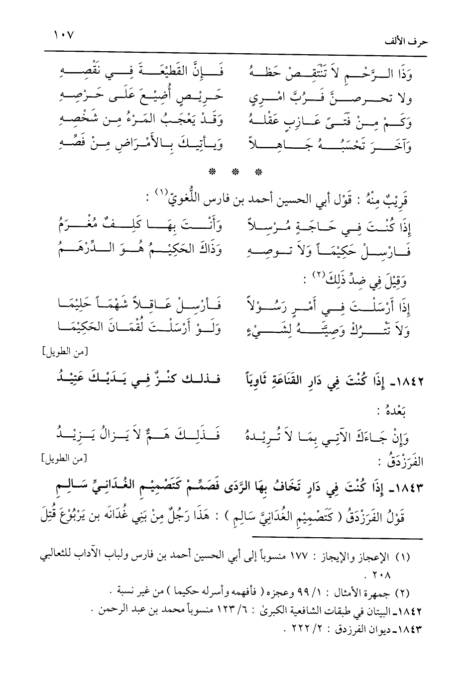 (¬1) الإعجاز والإيجاز: 177 منسوبًا إلى أبي الحسين أحمد بن فارس ولباب الآداب للثعالبي 208.