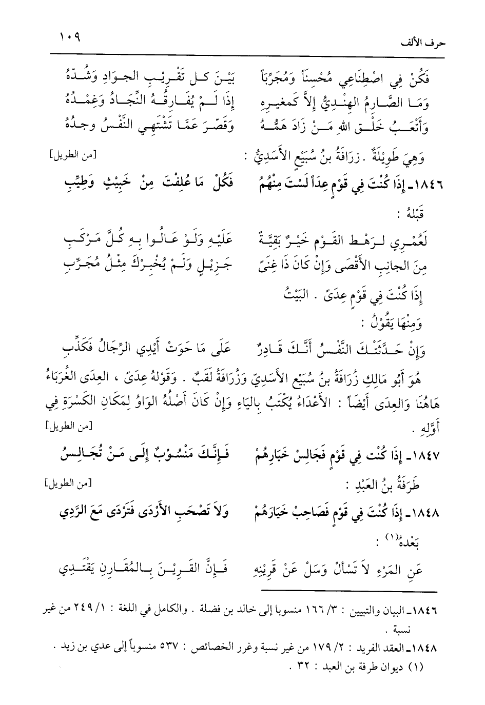إِذَا كُنْتَ فِي قَوْمٍ عِدًى. البَيْتُ