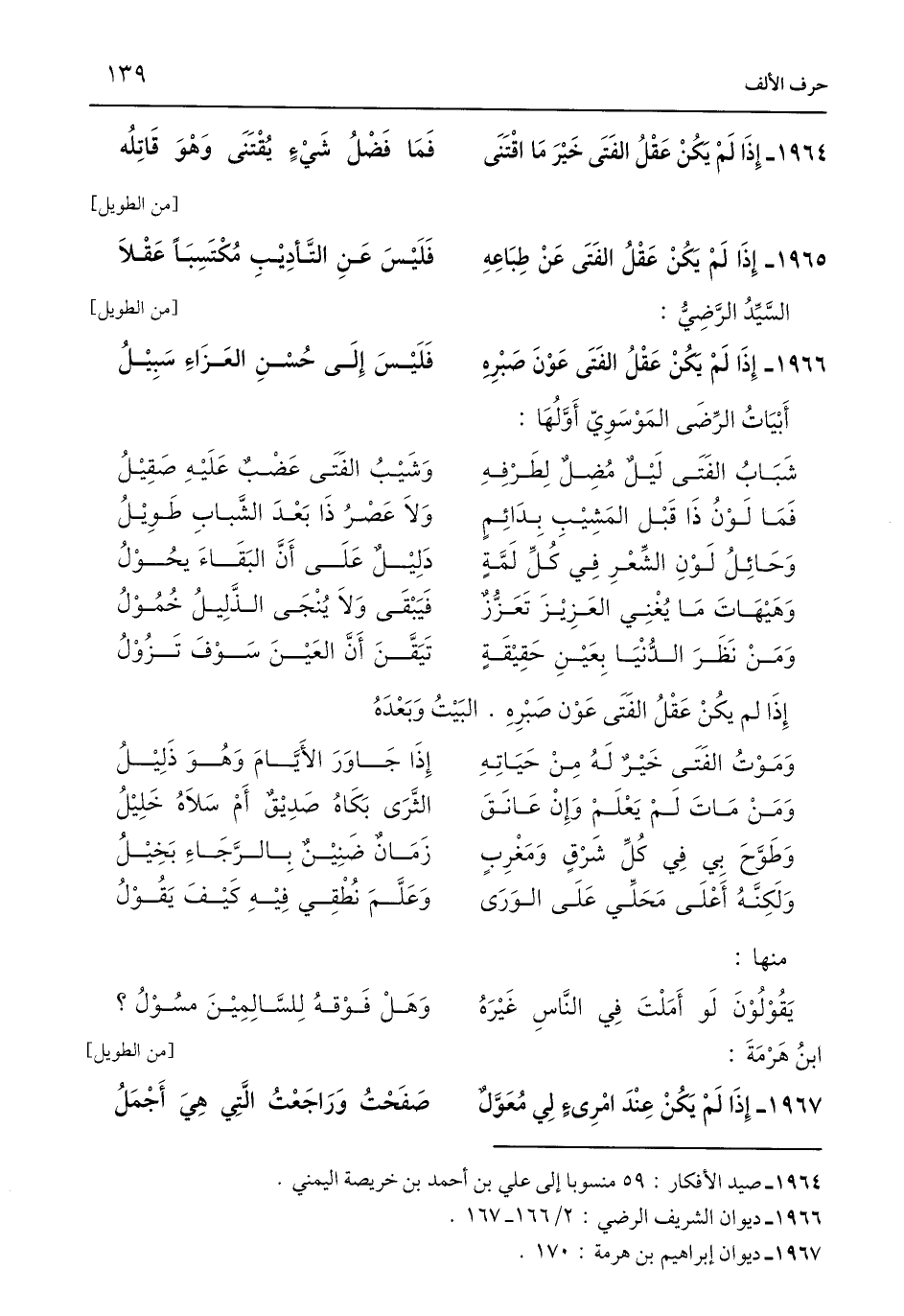 1964 - إِذَا لَمْ يَكُنْ عَقْلُ الفَتَى خَيْرَ مَا اقْتَنَى ... فَمَا فَضْلُ شَيْءٍ يُقْتَنَى وَهْوَ قَاتِلُه