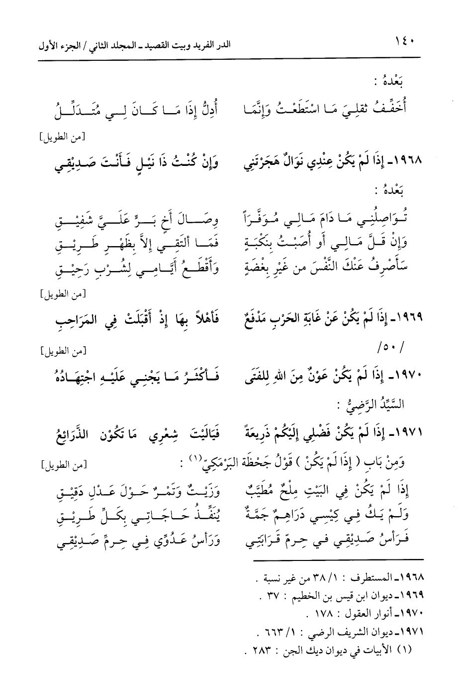 1971 - إِذَا لَمْ يَكُنْ فَضْلِي إِلَيْكُمْ ذَرِيعَةً ... فَيَالَيْتَ شِعْرِي مَا تَكُوْن الذَّرَائِعُ