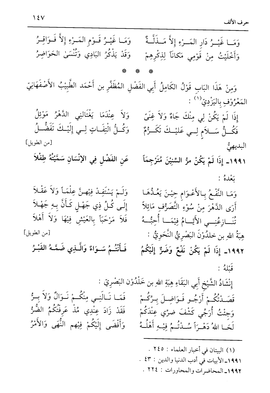 1991 - الأبيات في أدب الدنيا والدين: 43.
