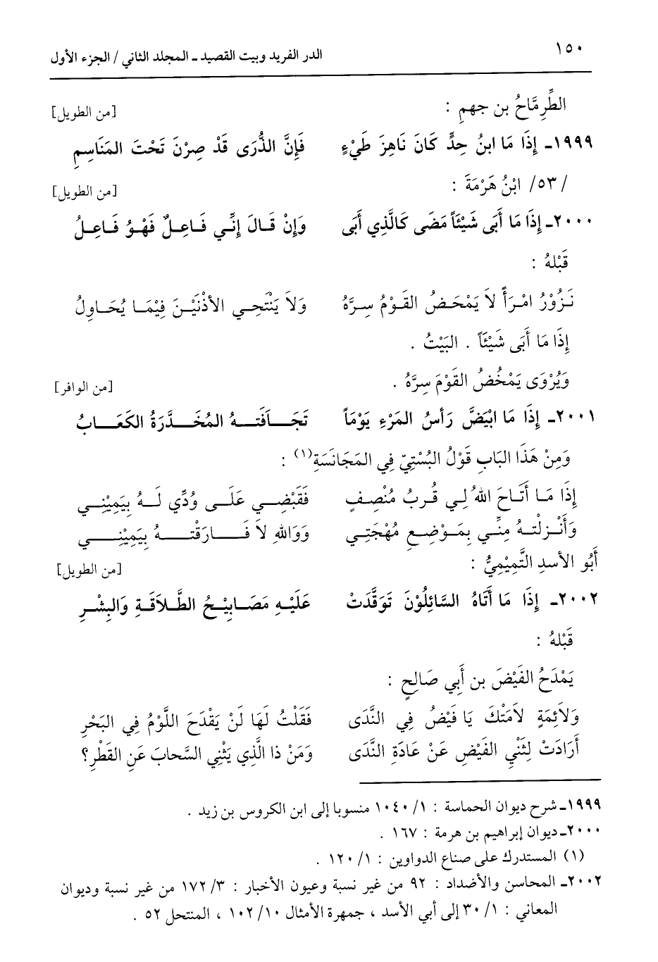 1999 - إِذَا مَا ابْنُ حِدٍّ كَانَ نَاهِزَ طَيْءٍ ... فَإِنَّ الذُّرَى قَدْ صِرْنَ تَحْتَ المَنَاسِمِ