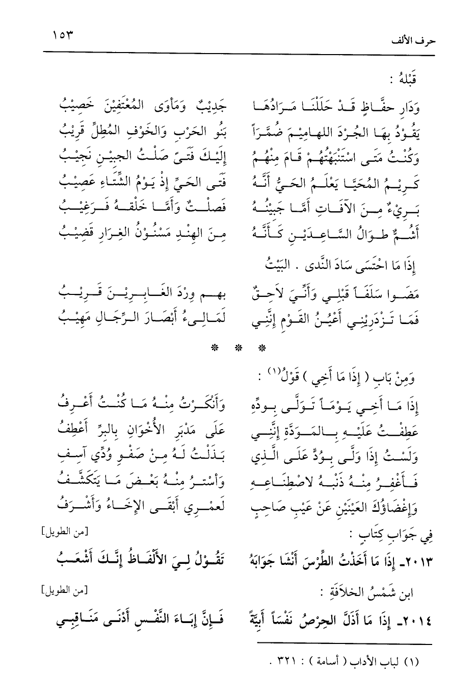 2013 - إِذَا مَا أَخَذْتُ الطِّرْسَ أَنْشَا جَوَابَهُ ... تَقُوْلُ لِيَ الالفَاظُ إِنَّكَ أَشْعَبُ
