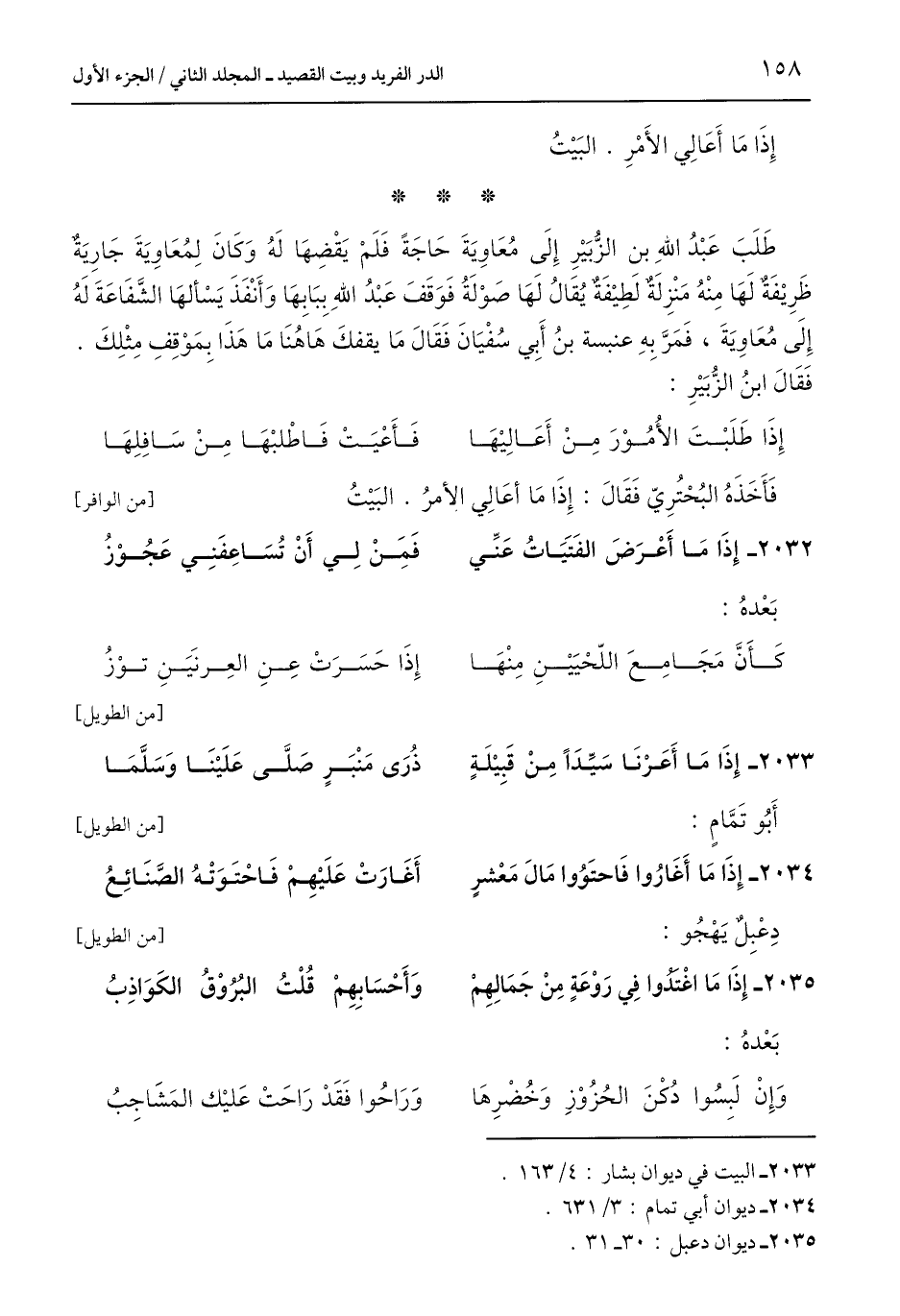 2033 - إِذَا مَا أَعَرْنَا سَيِّدًا مِنْ قَبِيْلَةٍ ... ذُرَى مَنْبَرٍ صَلَّى عَلَيْنَا وَسَلَّمَا