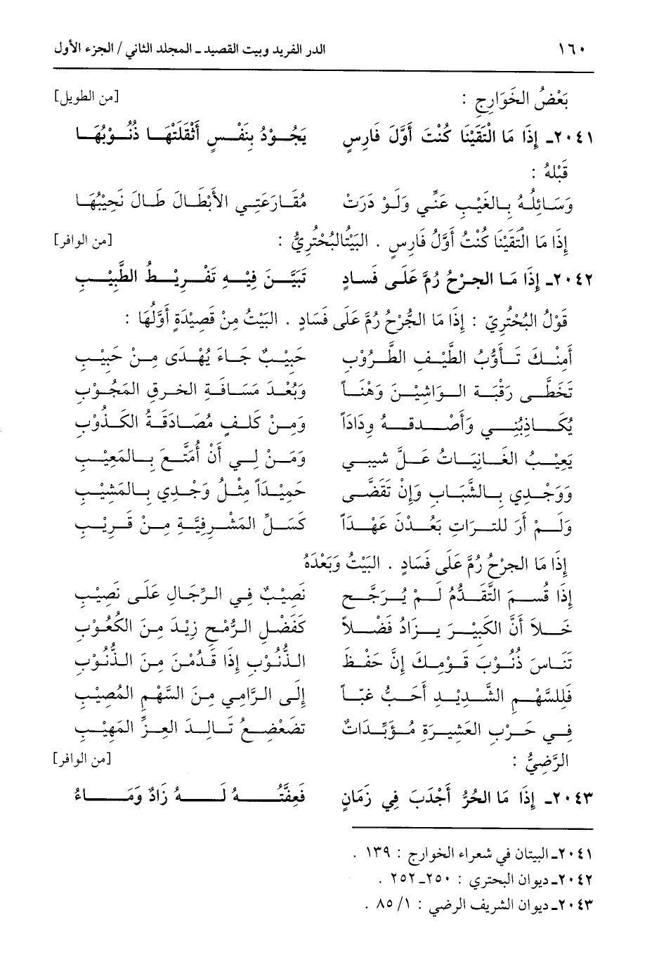 قَوْلُ البُحْتُرِيّ: إِذَا مَا الجُّرْحُ رُمَّ عَلَى فَسَادٍ. البَيْتُ مِنْ قَصِيْدَةٍ أَوَّلُهَا: