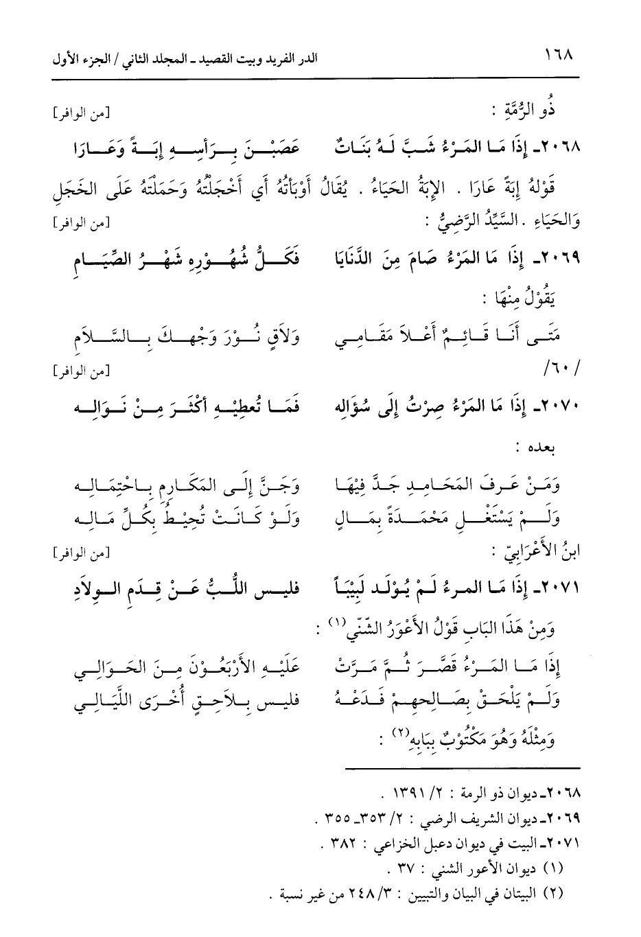 2068 - إِذَا مَا المَرْءُ شَبَّ لَهُ بَنَاتٌ ... عَصَبْنَ بِرَأسِهِ إِبَةً وَعَارَا